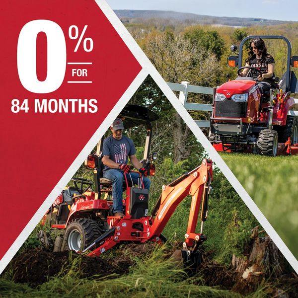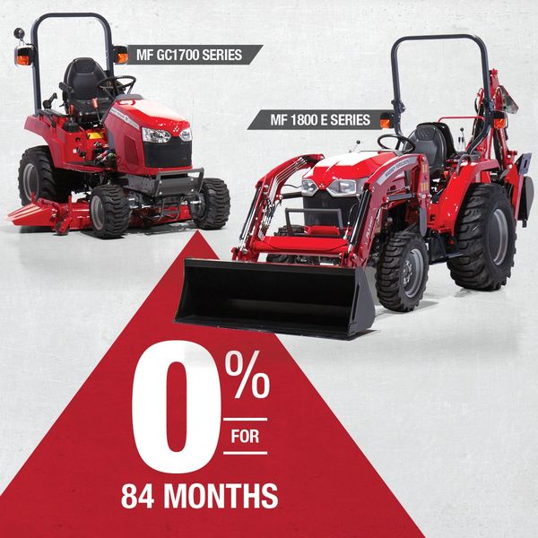 0% for 84 months on all Massey Ferguson tractors up to 60 HP